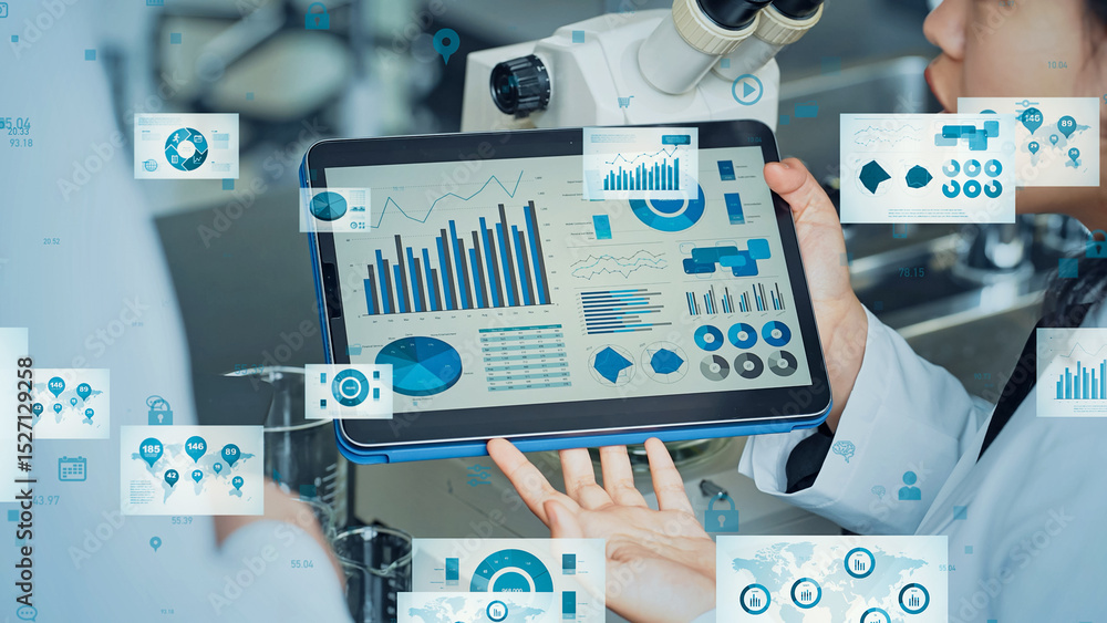 タブレットを見ながら研究する研究者と統計データのコンセプト