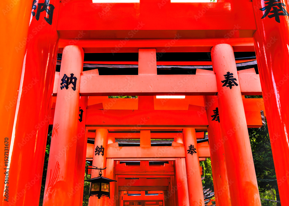 Colorful Tori Gates Lantern Fushimi Inari Shrine Kyoto Japan