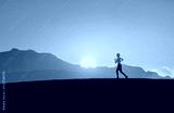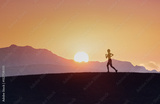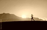 Fitness female silhouette running in nature sunset
