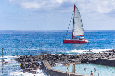 Catamaran en mer au large de Boucan Canot, île de la Réunion