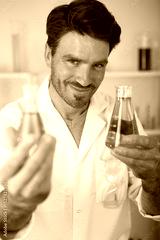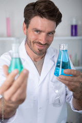 an investigator checking test tubes