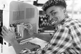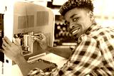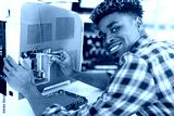 handsome cheerful computer engineer working