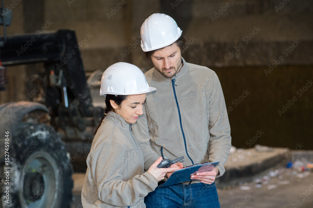 engineers in steel factory working on digital tablet