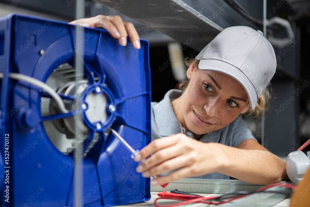 woman assembling a ventilation system