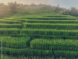 Green rice terraces and hillside village in Thailand. Sustainable farming and slow travel in untouched rural landscape. Eco tourism, organic farming, and sustainable agriculture. Local farming.