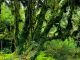 Green forest. Ancient tree covered in moss. Natural carbon sink and sustainable environment. Carbon absorption and environmental sustainability. Climate change awareness. Environmental conservation.