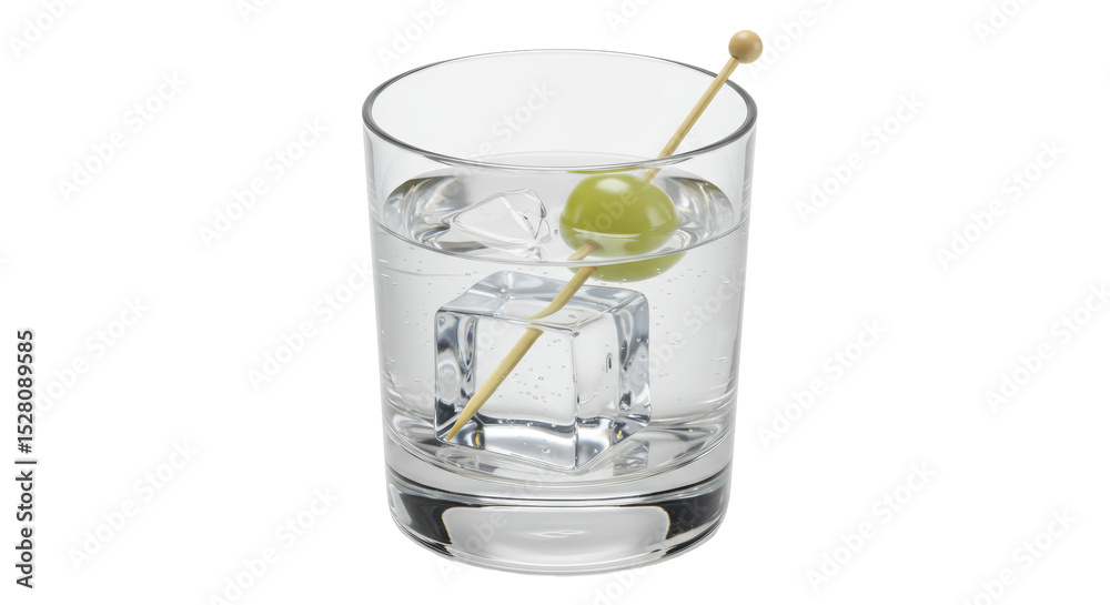 Isolated Cocktail Glass with Ice Olive and Toothpick