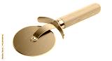 Isolated Stainless Steel Pizza Cutter with Wooden Handle