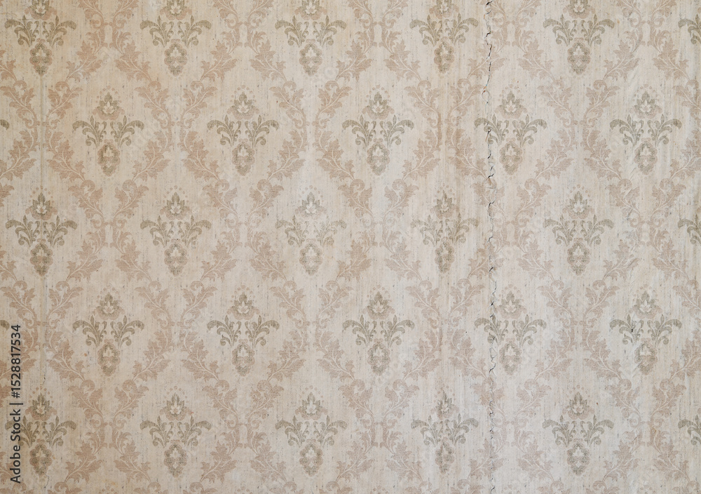 Old wallpaper on the wall. Old wallpaper for texture or background.