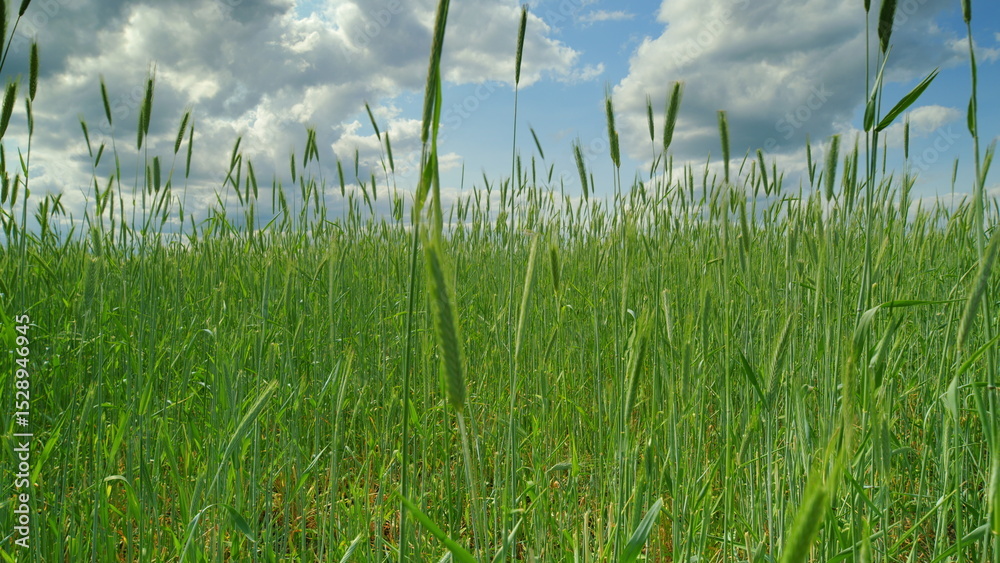 A Vibrant and Lush Green Field Beneath a Beautiful Scenic Sky Filled with Clouds