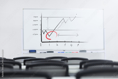 ホワイトボードにグラフがあるセミナーに参加する会議室などのマーケティングや集客イメージ