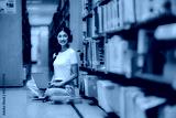 An Asian female student who loves learning spends her free time outside the classroom quietly researching and gaining knowledge alone in the library.