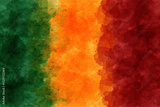 Mesh gradient with grain texture watercolor. Red, green, yellow colors. Abstract banner. Black history month. Juneteenth. MLK day.