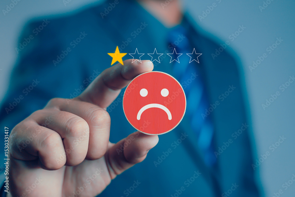 concept customer dissatisfaction experience Unhappy business customer with sad face, bad review, bad service, dislike, poor quality, low rating, bad social media.