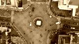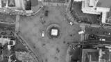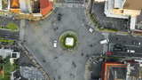 Aerial View of a City Square Intersection, Urban Landscape, Traffic and Buildings
