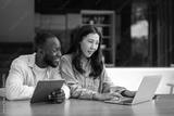 Digital lifestyle, online connectivity. Diverse couple enjoying entertainment shopping with laptop