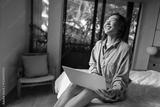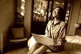 Asian woman using her laptop for remote freelance work, the freedom of a digital nomad lifestyle