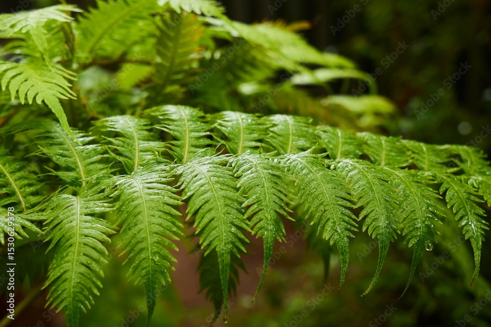 Tropical greenhouse. The plant is a perennial fern. Close-up
