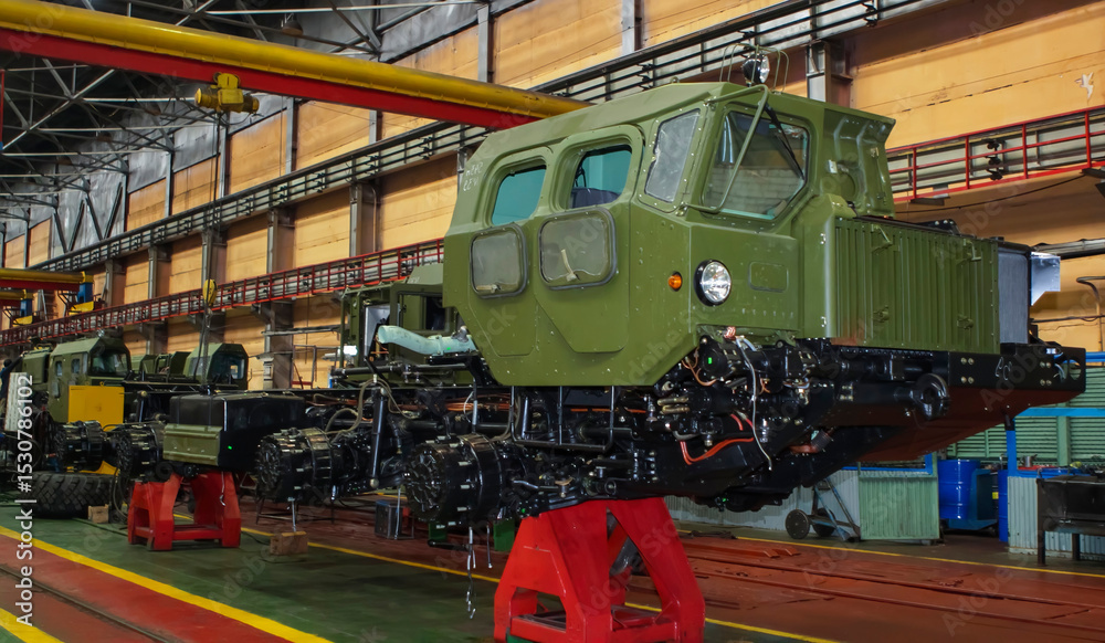 Military equipment production at Wheel Tractor Plant focusing on assembly line operations