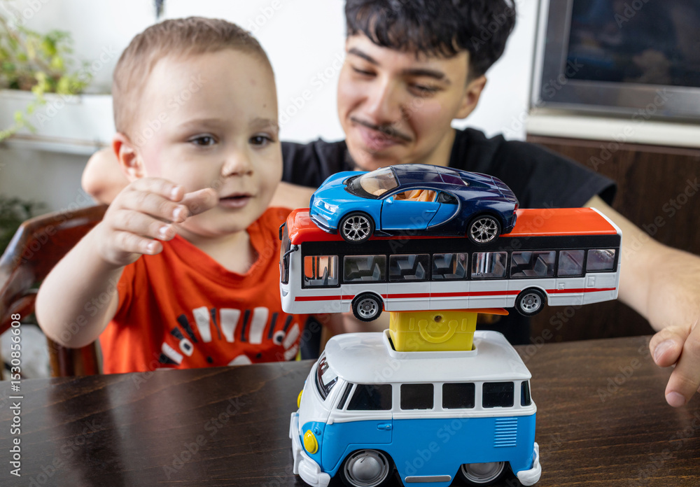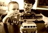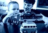 Two Jewish Half-brothers - 2,5 and 17 year old are playing with model cars.
