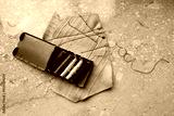 Vintage sewing machine parts in tin, retro craft tools, metal components, tailoring accessories, repair or restoration, vintage stitches