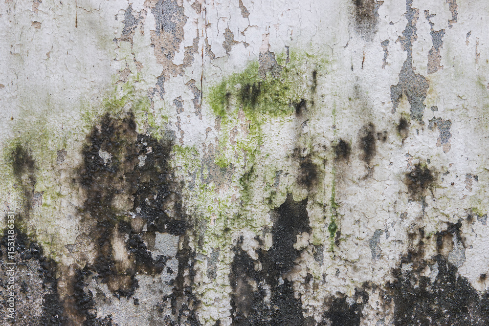 Grungy weathered concrete wall with cracks and stains, exuding a raw, aged texture background