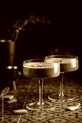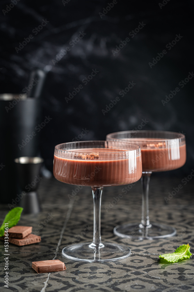 Chocolate Truffle Martini glass or espresso Martini Cocktail based on coffee, liqueur and vodka. Alcoholic drink. Space for text. High quality photo