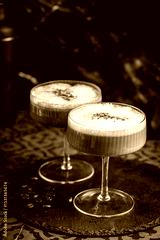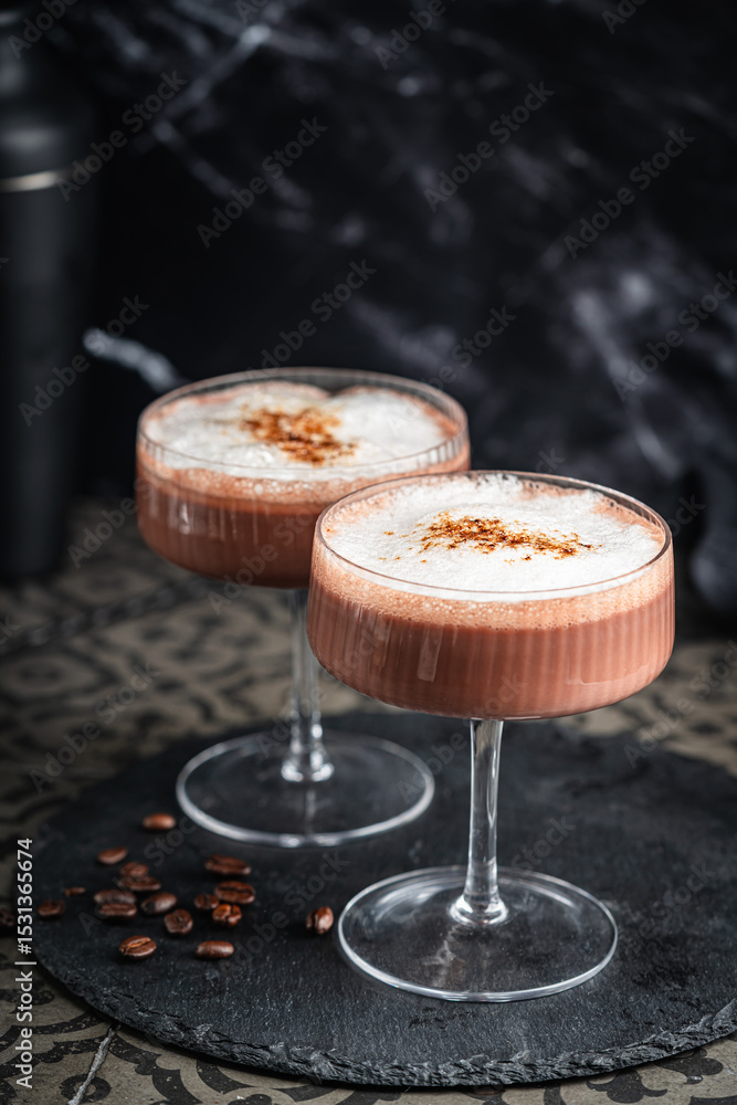 Chocolate Truffle Martini glass or espresso Martini Cocktail based on coffee, liqueur and vodka. Alcoholic drink. Space for text. High quality photo