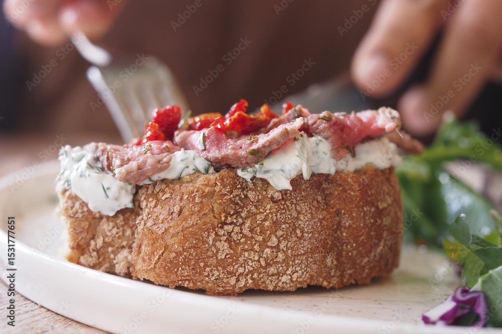 Delicious open-faced sandwich with fresh toppings