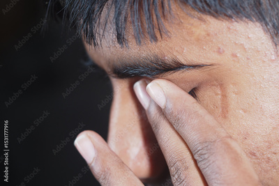 Young individual showing signs of stress or fatigue
