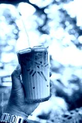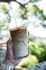 A cup of ice latte coffee with ice on hand