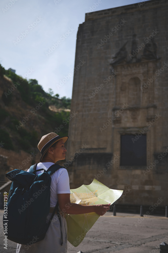 Traveler Enjoys Exploring Historic City Streets with Map During Summer Adventure