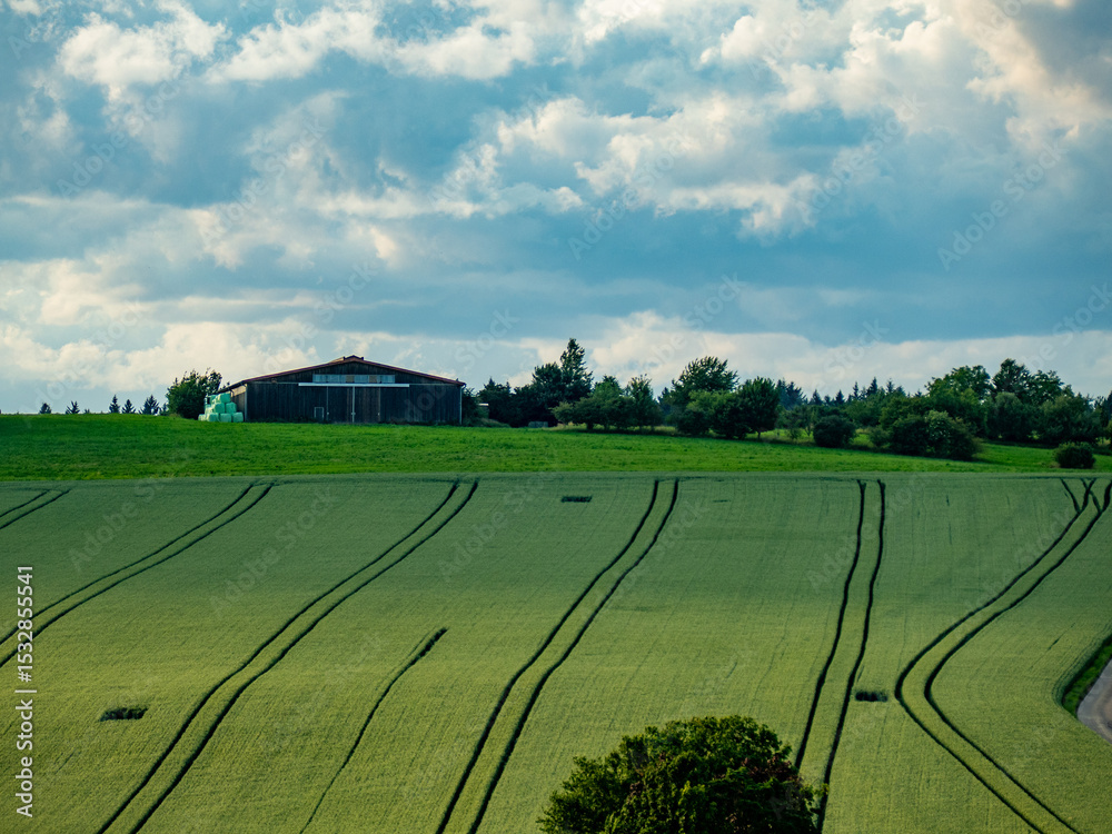 Fahrspuren im Feld