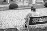 Woman sitting on a bench in a park enjoying nature