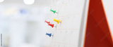 Desk calendar with pins for reminder in office workplace concept of time management agenda event planner or personal organization for business meeting and schedule planning or holiday plan.