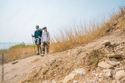 Hiker hiking trail journey, Trekking hike adventure, Walking lifestyles activity.