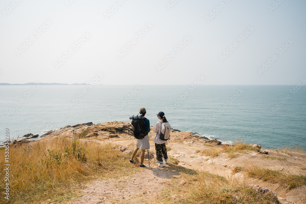 Hiker hiking trail journey, Trekking hike adventure, Walking lifestyles activity.