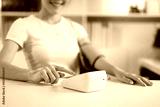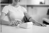 Closeup woman check up low blood pressure with digital pressure monitor, Hypotension problem