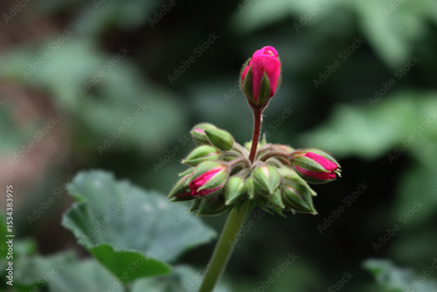 Geranium pink blossom on plant against green blurred background