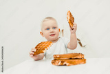 A delightfully happy child is thoroughly enjoying delicious waffle treats in a bright and cheerful setting that radiates warmth and joy, creating magical moments around breakfast time