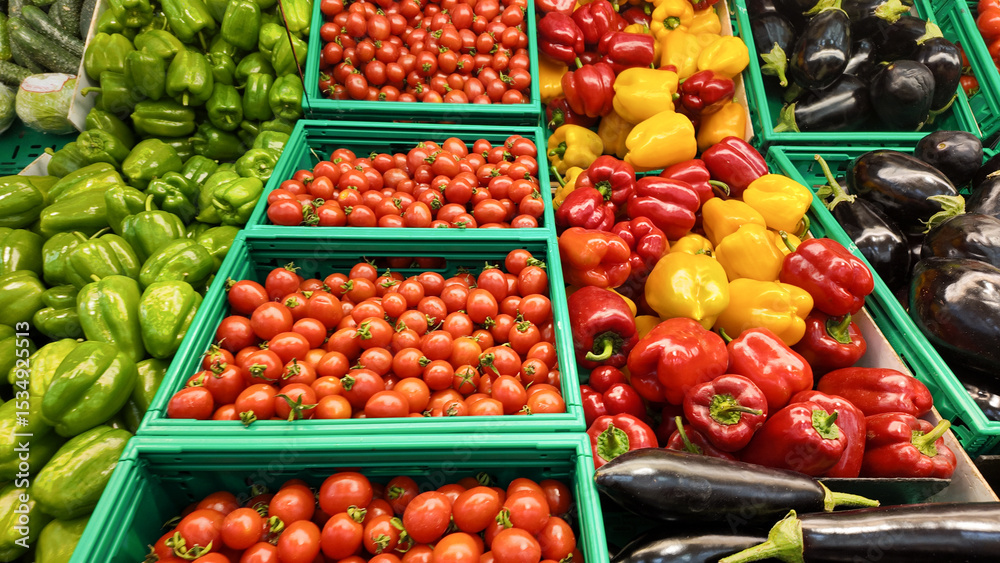 Fresh vegetables arranged in vibrant display at market