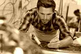 a stained glass window worker