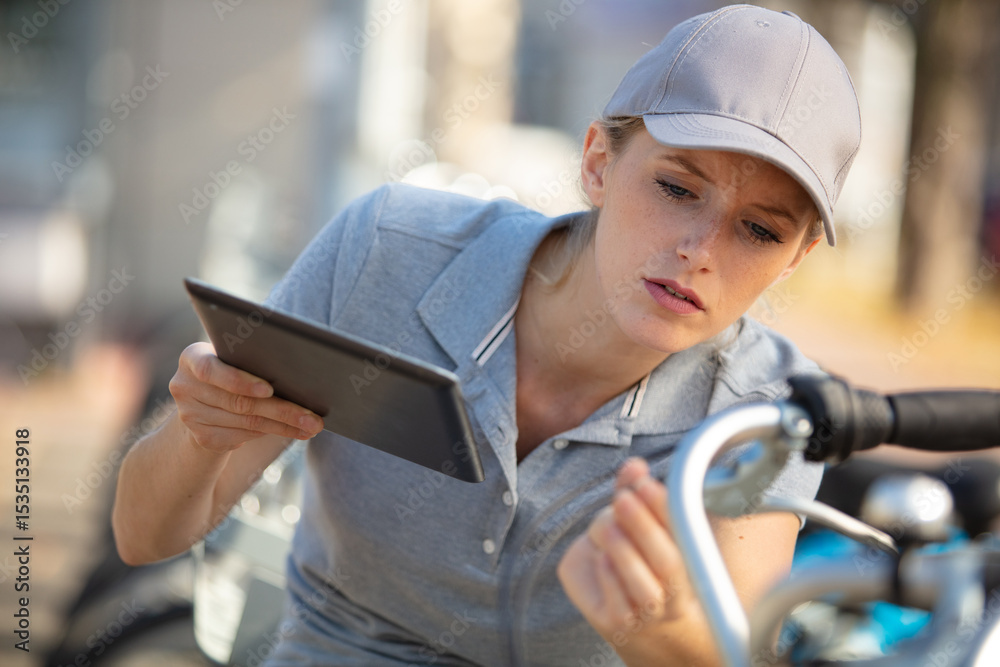 woman bicycle mechanic is repairing a bike in the workshop