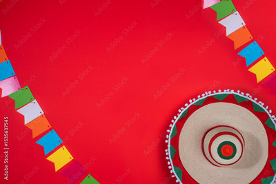 Mexican Independence Day and Cinco de Mayo concept. Background with sombrero for greeting card, invitation, advertising.