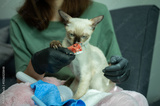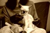 Pet's owner feeding liquid snack to her Siamese cat. Your cat needs some variety in its diet as well as a tasty treat.