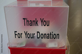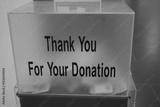Donation box encouraging community support and generosity