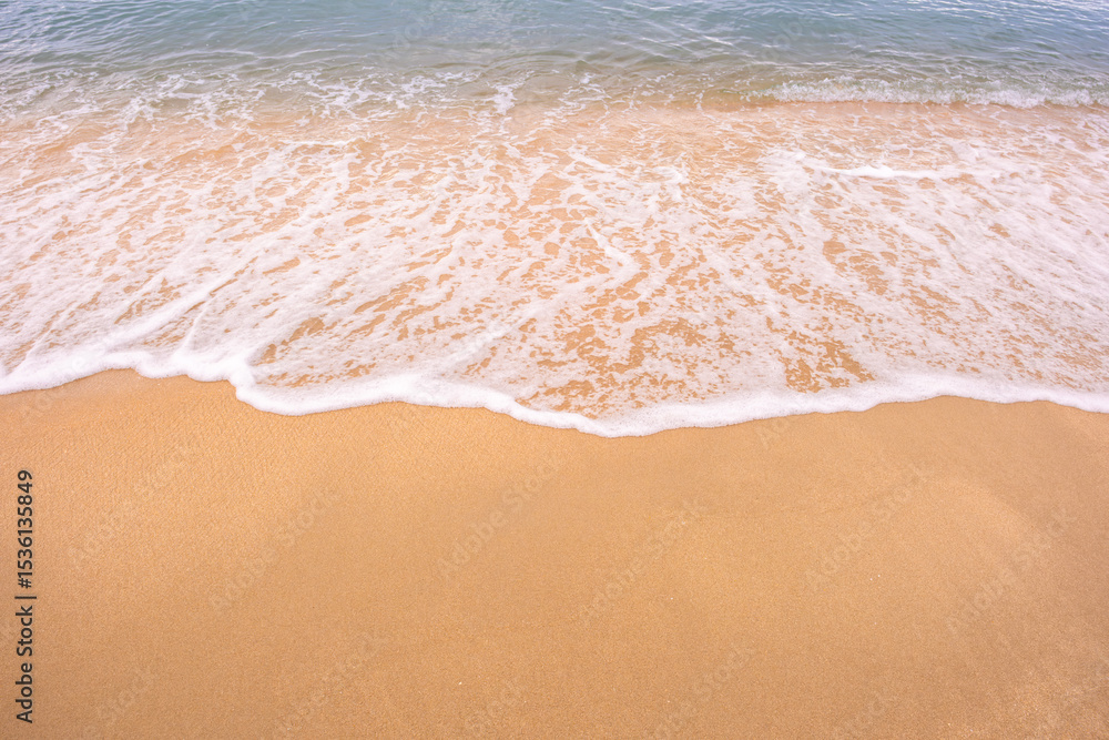 Nature of the beach and sea Summer with sunshine, sandy beaches, clear blue waters sparkling against the blue sky. On an island with good ecology and environment Background for summer vacation