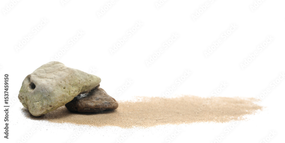 Beach stones isolated on white background, side view
