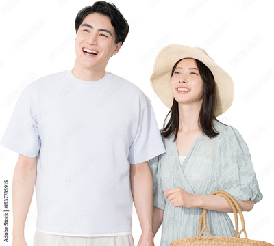 夏のカップルでお出かけやレジャーやリゾート旅行、使いやすい背景透明(png)の合成素材 新婚旅行や夏休みのイメージ