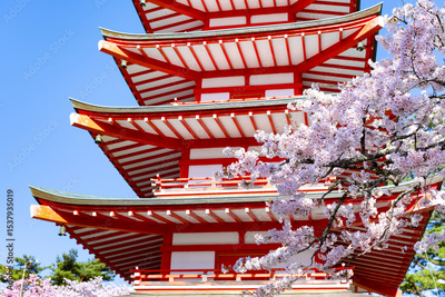 山梨県富士吉田市 春の新倉山浅間公園